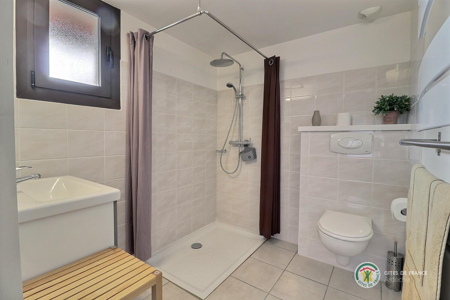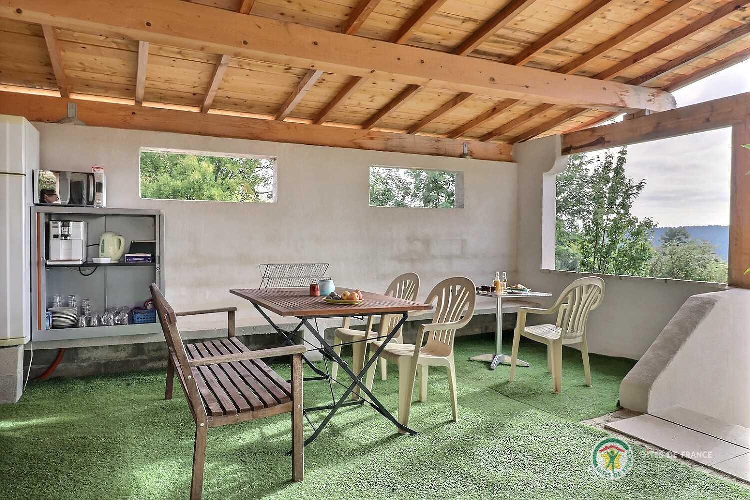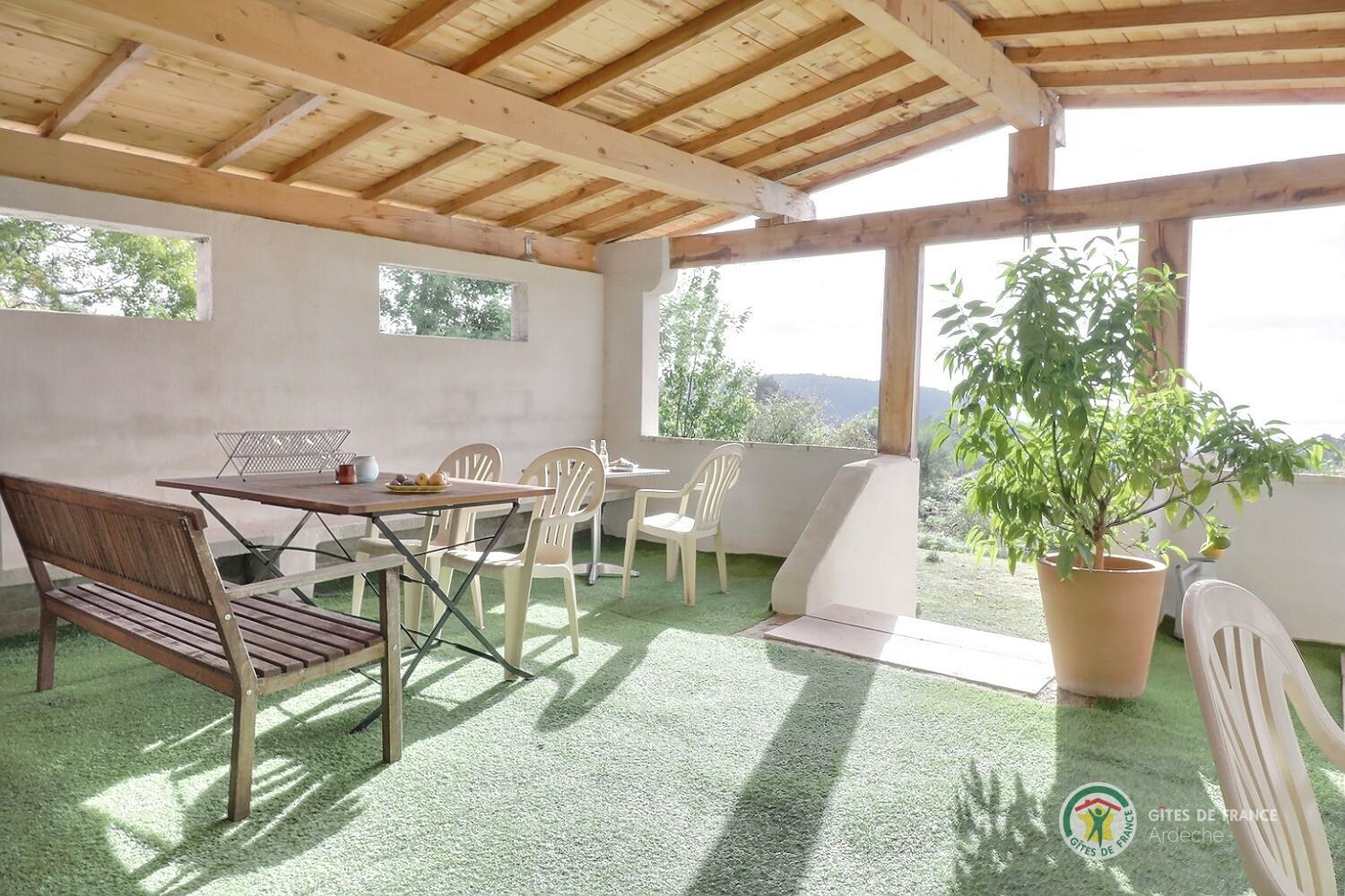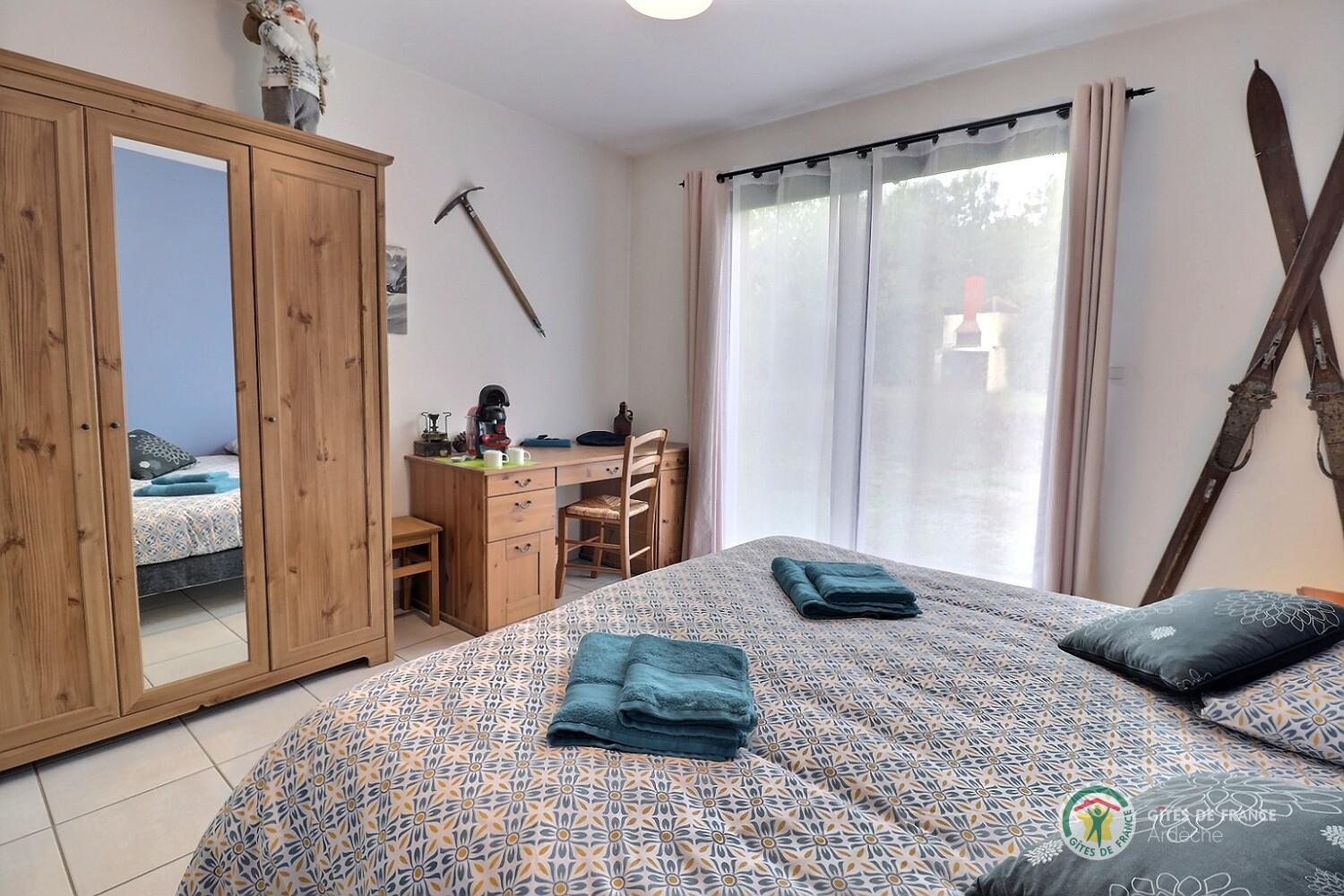 Propriété calme à mi chemin des Monts d'Ardèche et des gorges, à 3km de la cité médiévale de Largentière. 4 ch de plain pied en bordure de pinède, spacieuses, salle d'eau privée, clim, décoration soignée, terrasses privatives. Accès à la piscine couverte,
