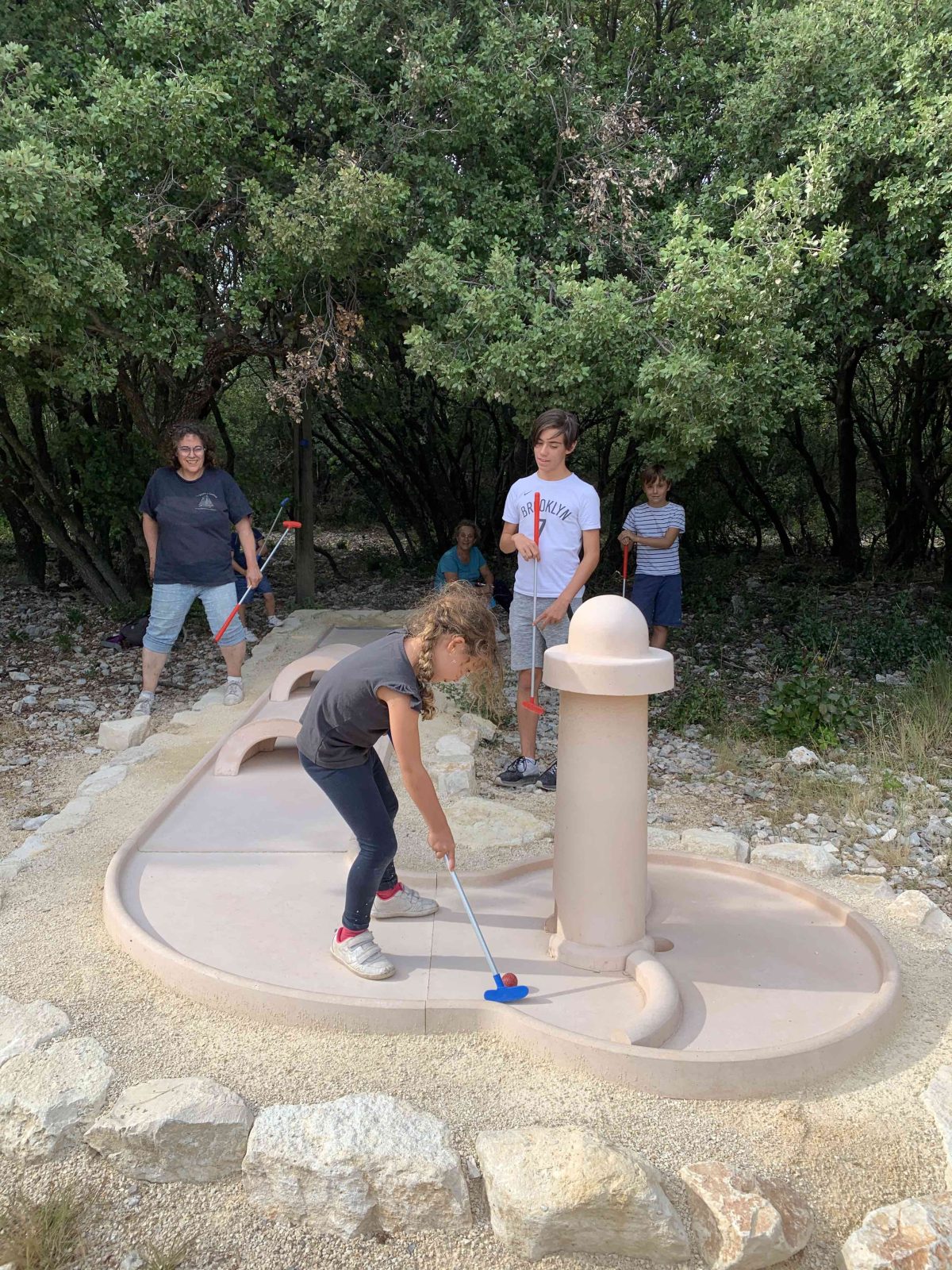 De très nombreux jeux gratuits (mini golf, kartings, bac à sable, cabanes... Des ateliers chasseurs de minéraux, fossiles et création bracelet à petits prix. Espace sieste et méditation. Une visite aussi adapté aux enfants (pas de guide, pas de réservation, peu de marche...). Prêt de porte bébé.