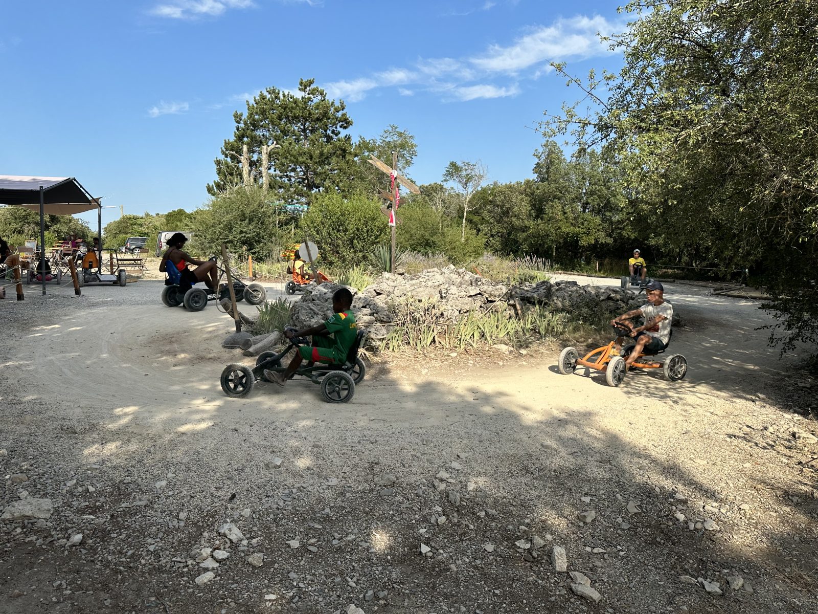 Nombreux espaces de jeux gratuits et ateliers fossiles et créatifs à petit prix. Snack et goûterie chaque jour avec produits locaux, bar à bières locales. Circuit kartings à pédales, draisiennes et trottinettes.