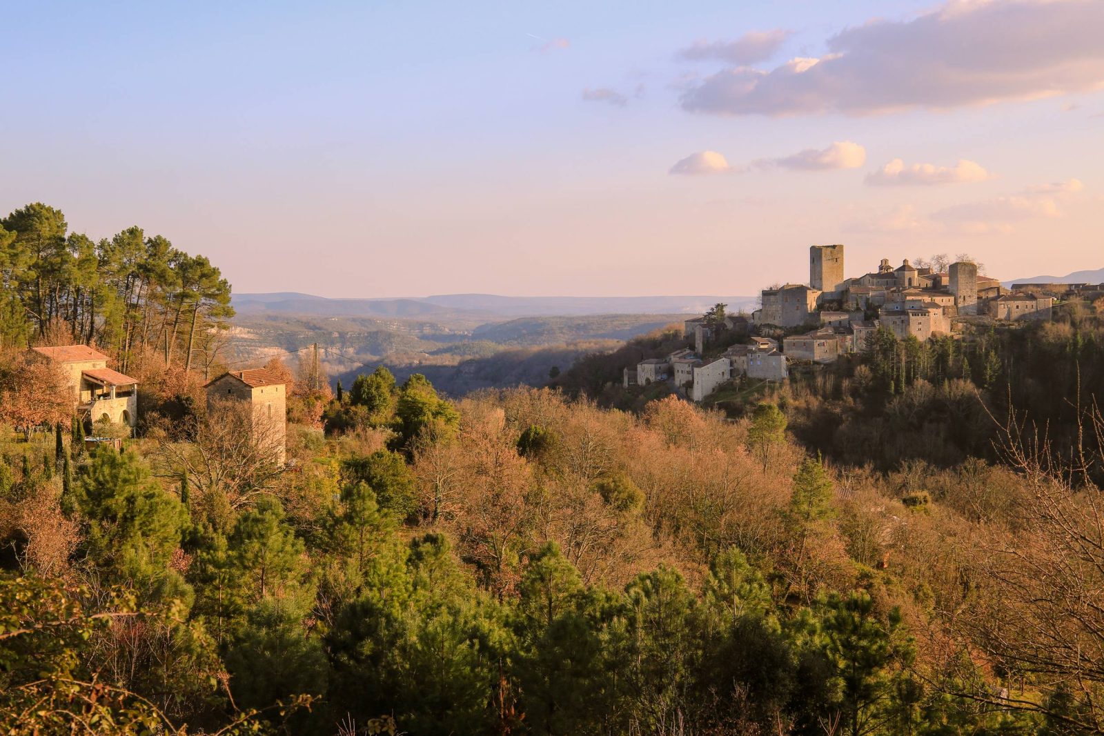 1. Mas Gauthier : [Laurac 2.7 km] Sur la droite, suivez la route sur 200m environ puis tournez à gauche. Cette calade très agréable traverse ensuite le ruisseau des Farnayres. Poursuivez jusqu'à l'embranchement.