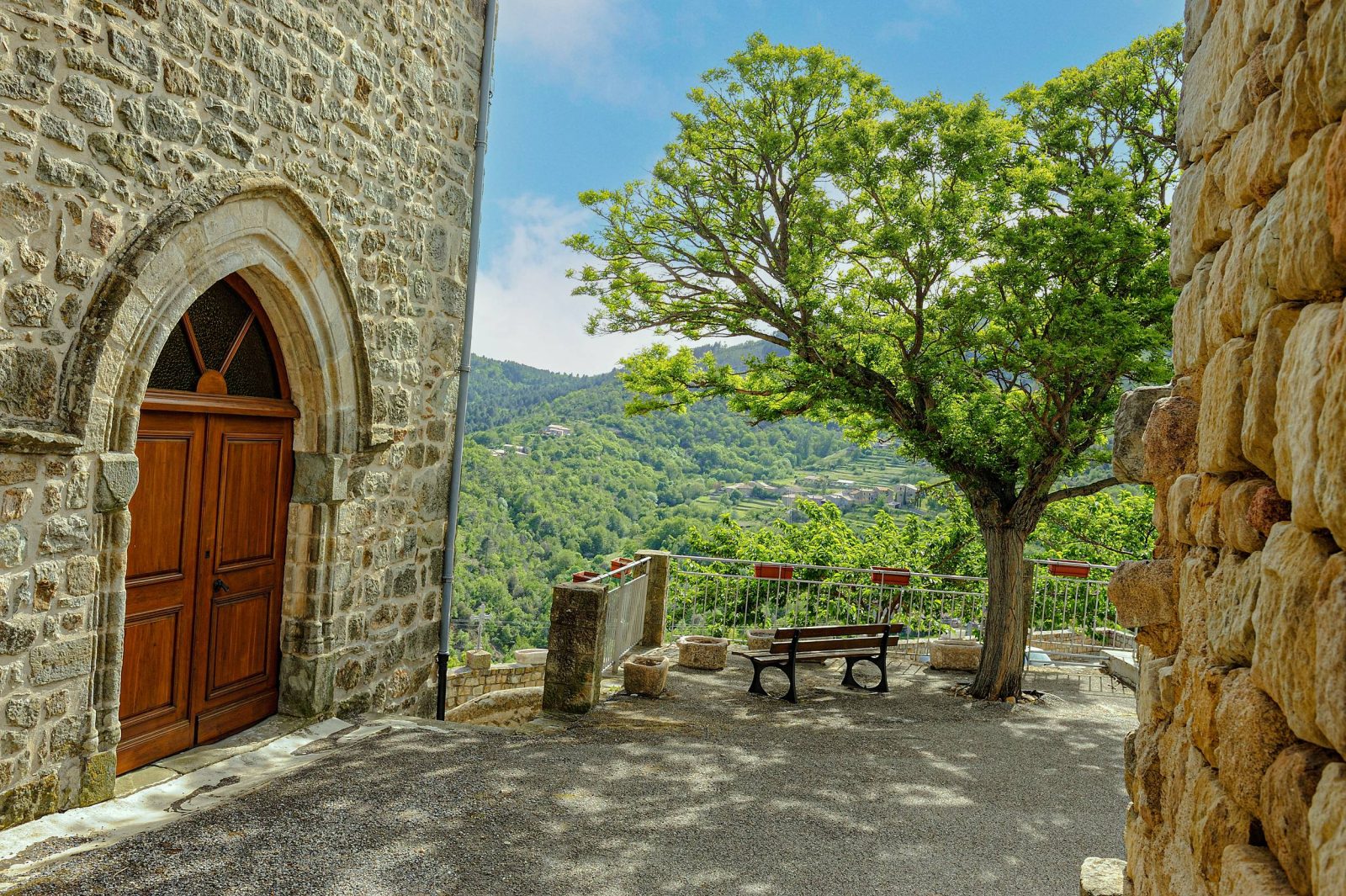 Cette boucle entre Chazeaux et Rocher, vous offrira de beaux panoramas sur la vallée de la Ligne et de la Lande. Vous serez immergé au cœur de la nature, entre châtaigniers et pins. Vous aurez l'occasion de découvrir la Vierge du Ranc Courbier, une magnifique statue qui trône au dessus de Rocher. Vous arpenterez les anciens chemins, entourés des terrasses cultures ou "faïsses", typique des paysages ardéchois.