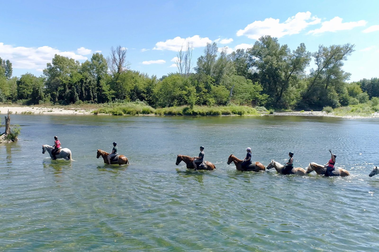 Descente du Chassezac à cheval sur 1km de long. Randonnées à la 1/2 journée avec visite de dolmen et traversée de rivières pour cavaliers confirmés uniquement. Poids maximum 90 kg.