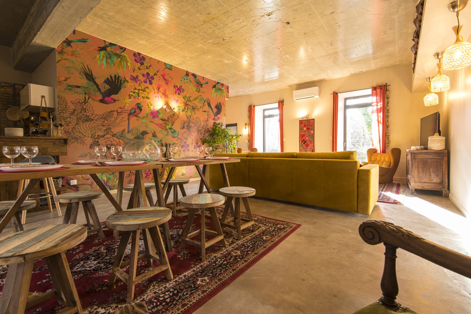 Soyez les bienvenus sur notre domaine du 113 impasse de l’Usine. Situé en plein cœur de l’Ardèche touristique, vous serez accueillis dans une ambiance unique et atypique ! Chacun des appartements possède un extérieur privé pour plus d’intimité. La décoration de nos logements est inspirée des 4 coins de la planète. Vous pourrez vous détendre sous le soleil au bord de la piscine ou sous le pool house plus ombragé, et profiter du coin bar-snacking sur place. À votre arrivée, nous vous donnerons tous les renseignements sur les activités culturelles et touristiques de notre région Notre restaurant valorise une cuisine authentique et locale tout en intégrant des influences du monde entier , les cocktails à siroter au bord de l’eau sont un véritable appel à la déconnexion. Le domaine du 113 est parfait pour organiser des mariages, baptêmes, séminaires et expositions grâce à sa magnifique salle de réception Les activités de plein air comme le canoë, canyoning, randonnée, pêche, visites de grottes rupestres , équitation offrent une véritable bouffée d’air pur et de détente Entouré d’une nature sauvage et préservée le Domaine du 113 promet une expérience unique alliant liberté, détente et découverte.