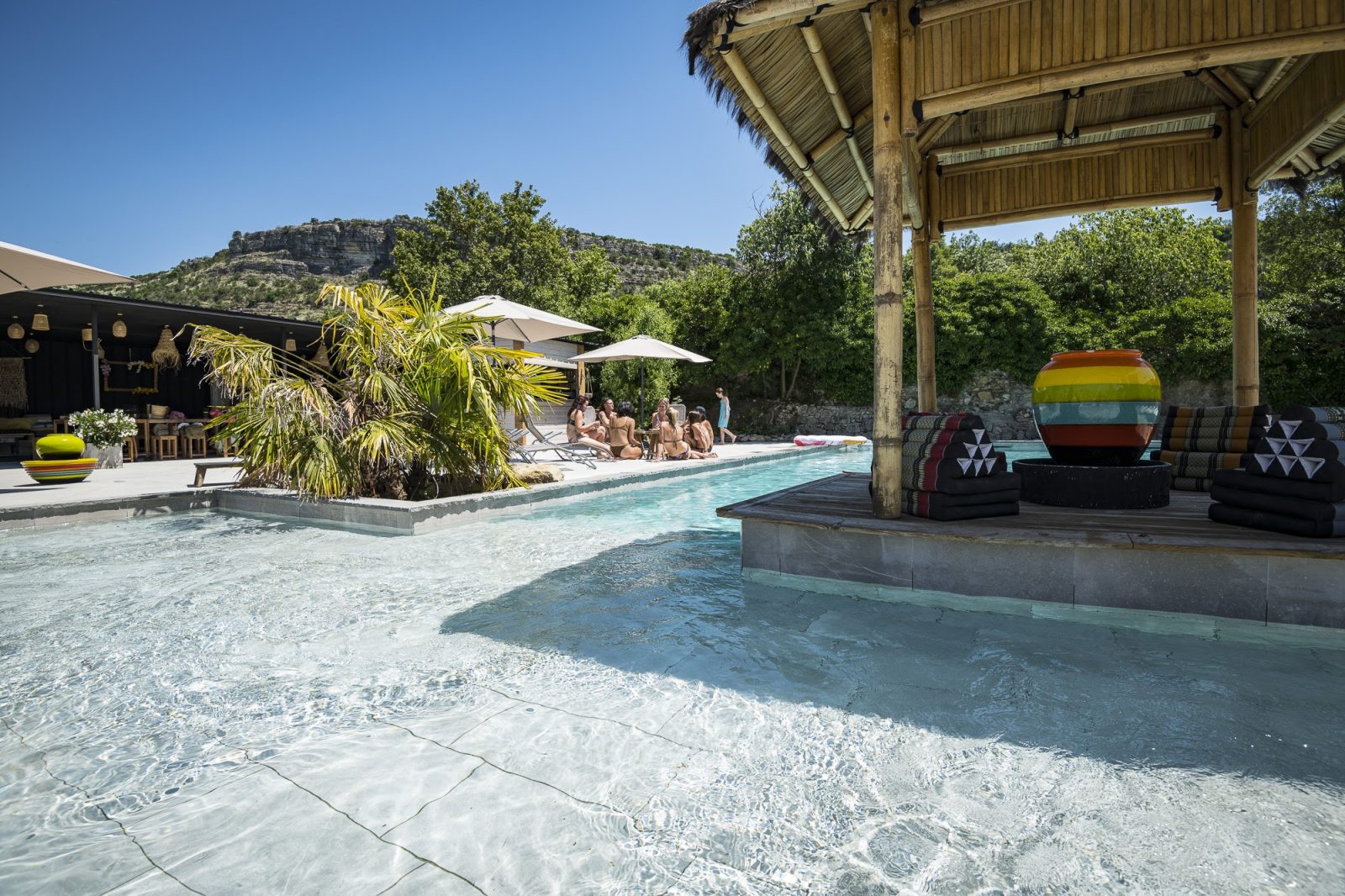 Le domaine du 113, niché au cœur des défilés de Ruoms, est un havre de paix 5 étoiles mêlant authenticité et modernité. Il accueille jusqu’à 52 personnes dans des gîtes élégants et dispose d’une piscine inspirée des plus beaux domaines Balinais.
