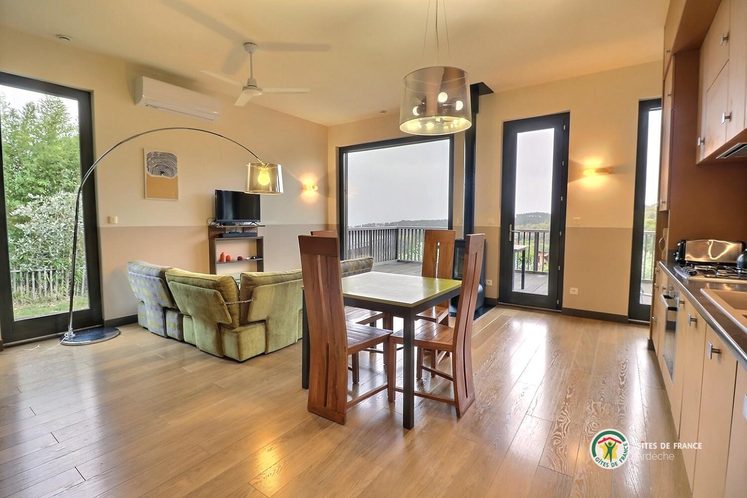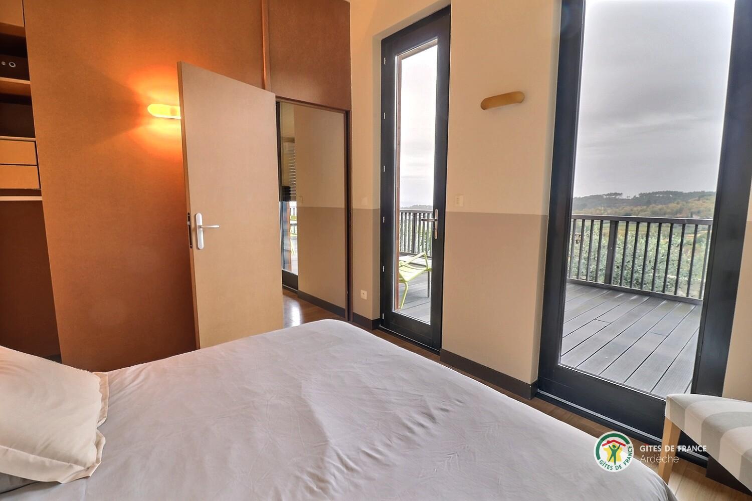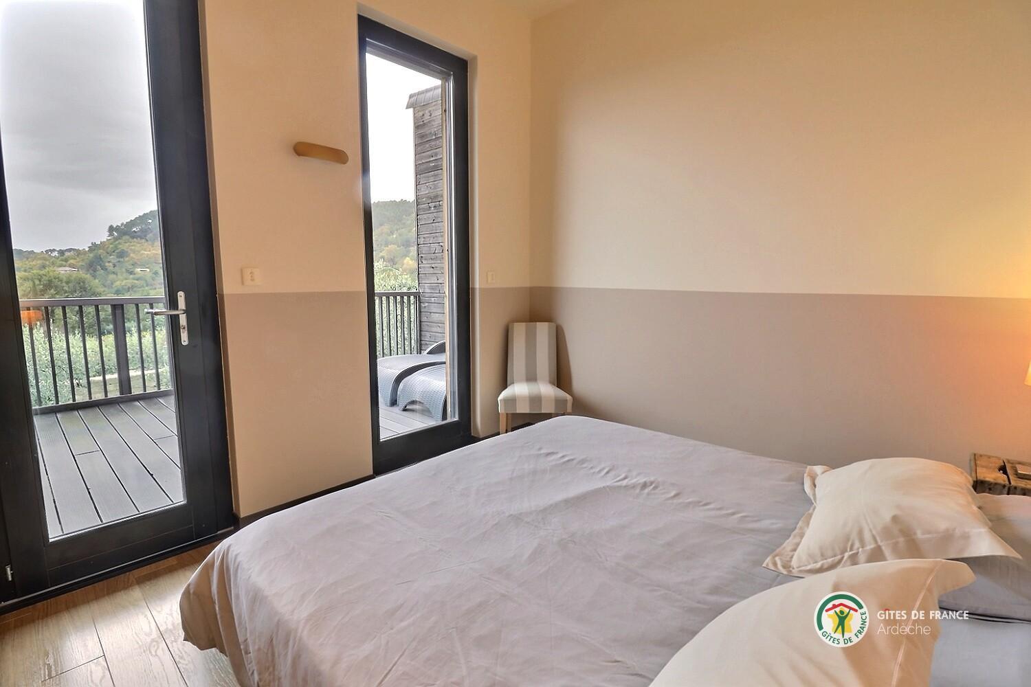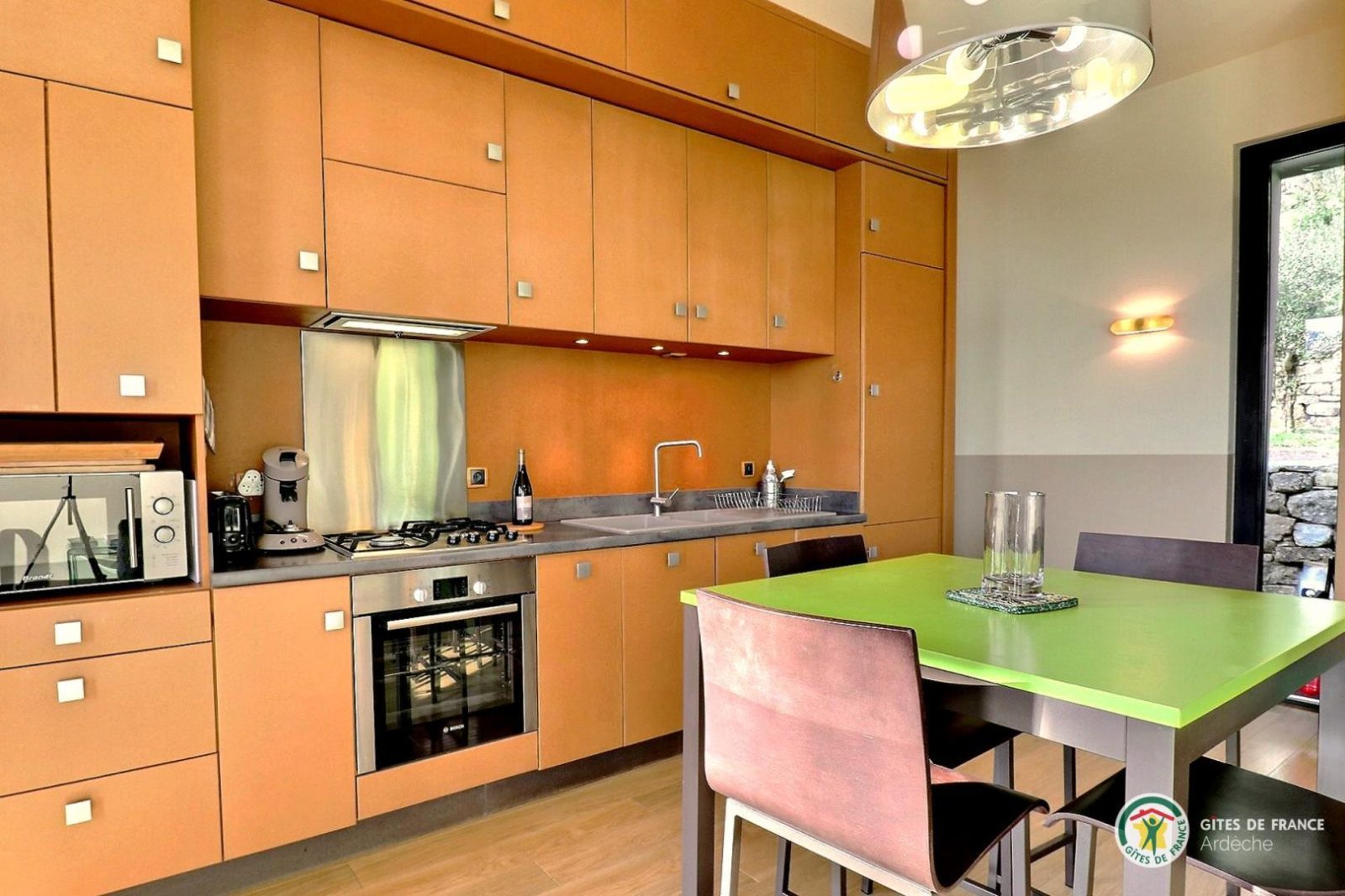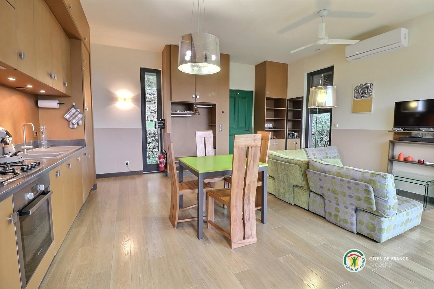 Bienvenue à Sanilhac dans notre gîte Picholine ! C'est un écogîte bâti sur des coteaux cévenols avec une vue exceptionnelle sur la nature environnante. La lumière est partout dans le gîte. Vous apprécierez son aménagement contemporain, la belle terrasse exposée au sud et la piscine à partager avec un 2ème gîte à proximité. De nombreuses visites sont à faire depuis ce lieu de séjour : les villes médiévales de Largentière et de Joyeuse et leurs beaux marchés, les villages classés de Balazuc, Labeaume, Voguë,... les gorges de l'Ardèche et la Caverne du Pont d'Arc, ...