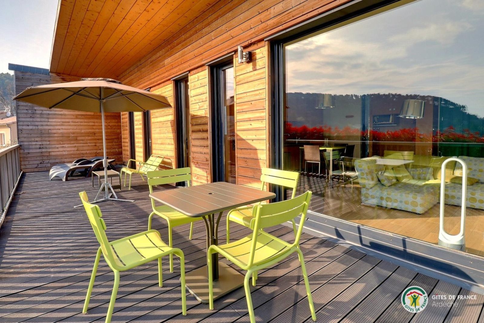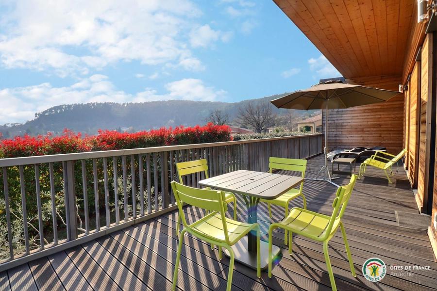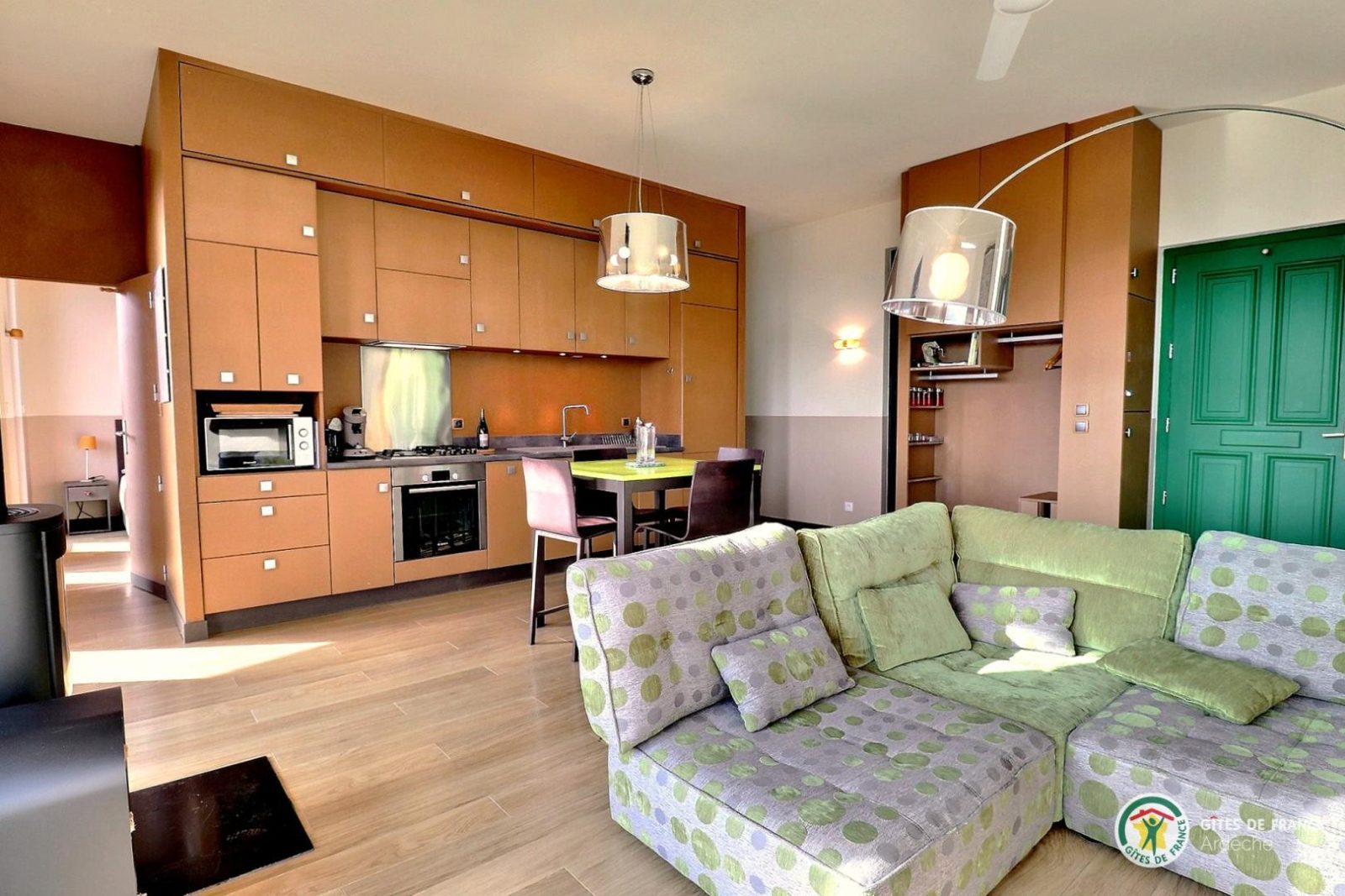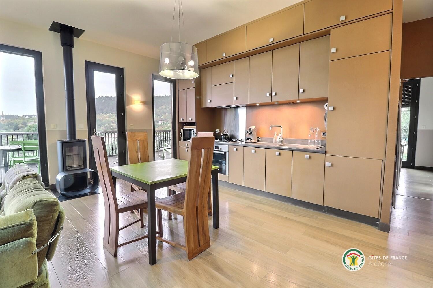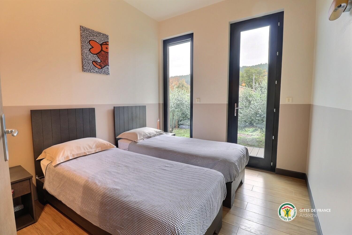 Bienvenue à Sanilhac dans notre gîte Picholine ! C'est un écogîte bâti sur des coteaux cévenols avec une vue exceptionnelle sur la nature environnante. La lumière est partout dans le gîte. Vous apprécierez son aménagement contemporain, la belle terrasse exposée au sud et la piscine à partager avec un 2ème gîte à proximité. De nombreuses visites sont à faire depuis ce lieu de séjour : les villes médiévales de Largentière et de Joyeuse et leurs beaux marchés, les villages classés de Balazuc, Labeaume, Voguë,... les gorges de l'Ardèche et la Caverne du Pont d'Arc, ...