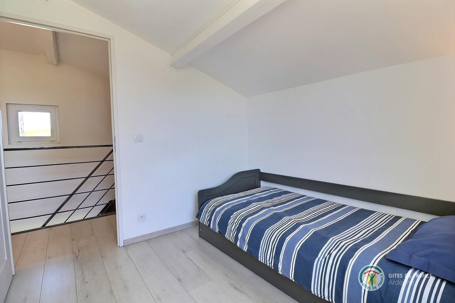 A l'étage, deux chambres, l'une avec un lit de 160 cm et l'autre avec lit gigogne, une salle d'eau avec douche et wc.
