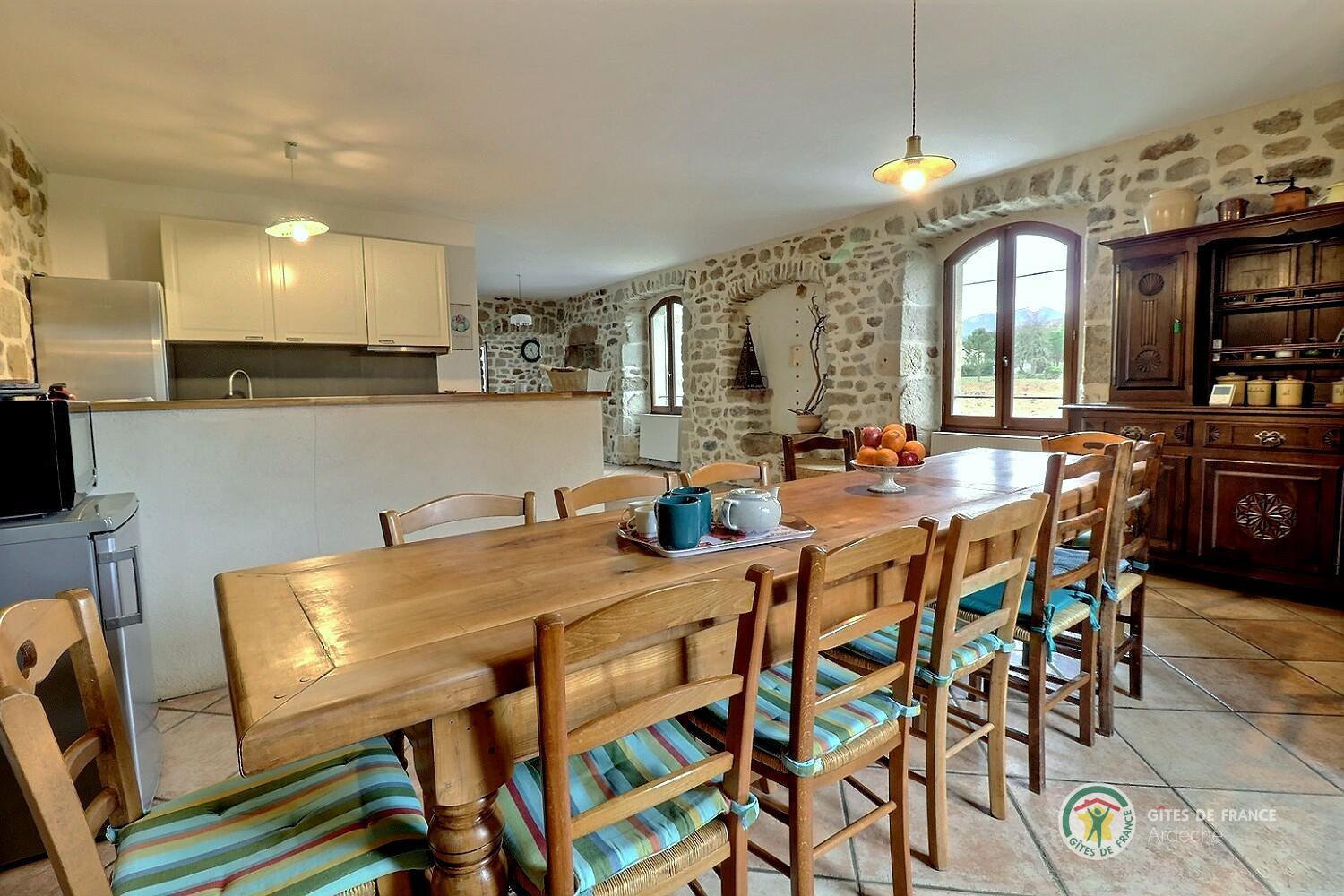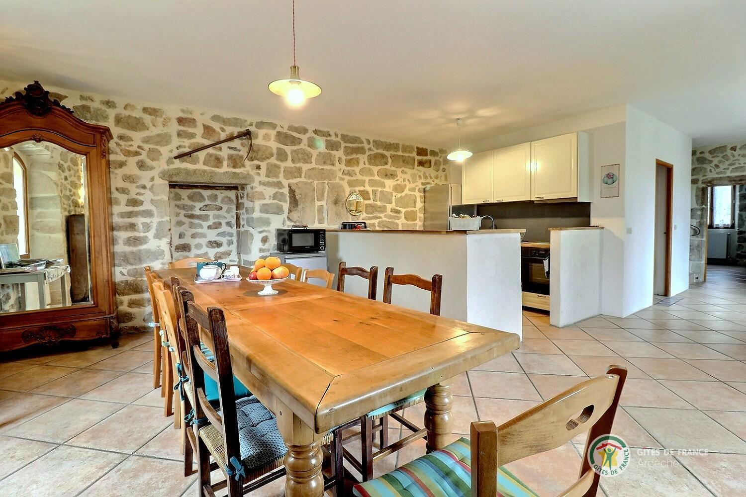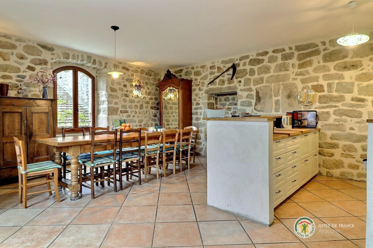 A trois kilomètres au sud de Largentière, cette grande maison de famille en pierres est idéale pour se retrouver entre amis ou en famille. Le rez-de-chaussée offre les espaces de vie et une chambre, les quatre autres sont à l’étage.