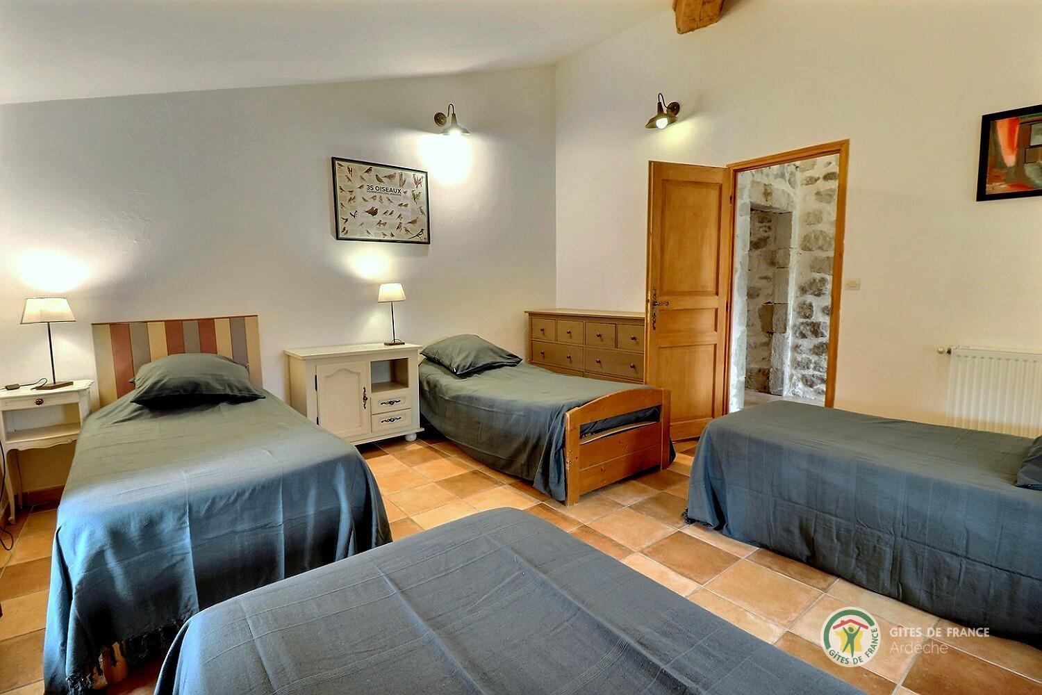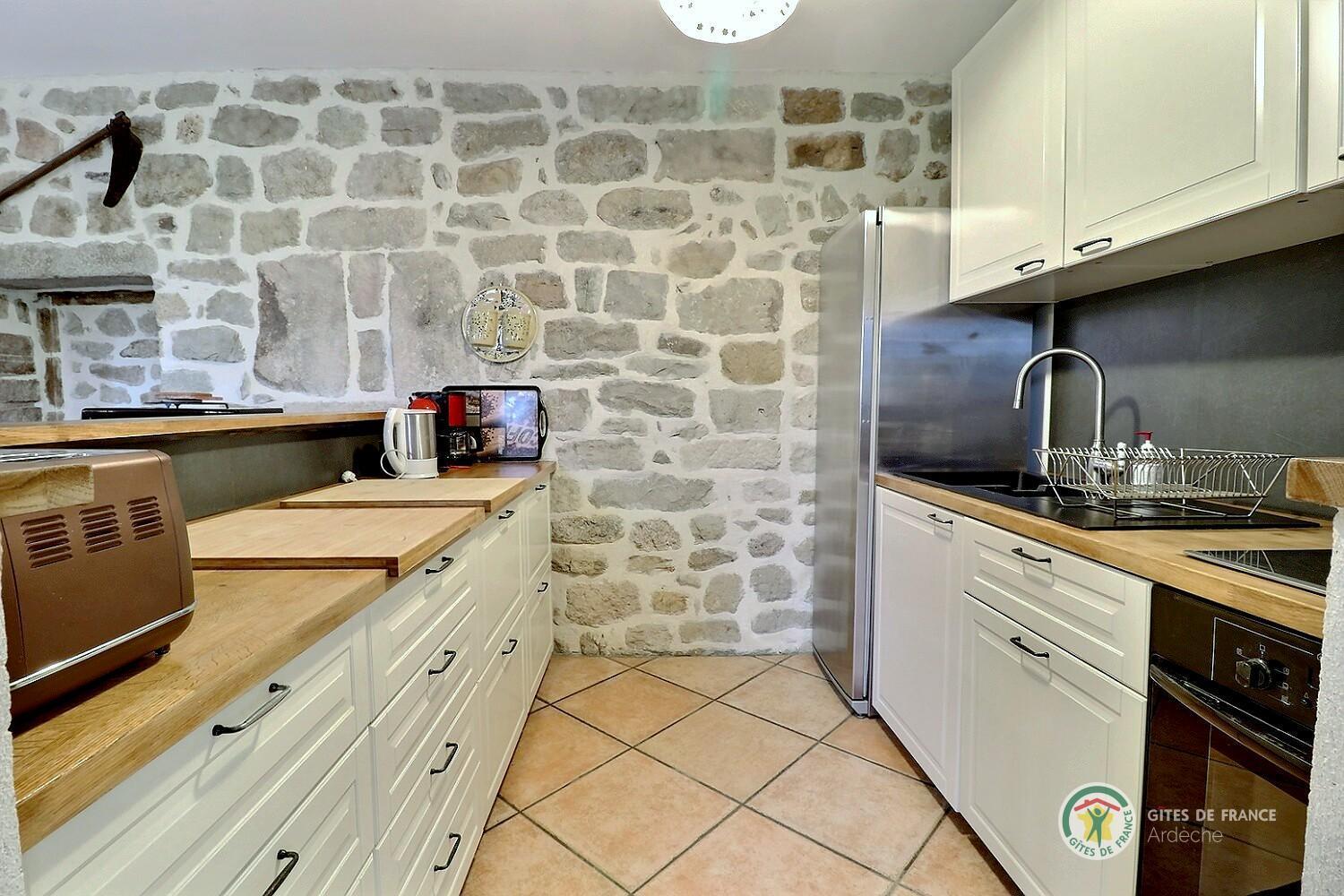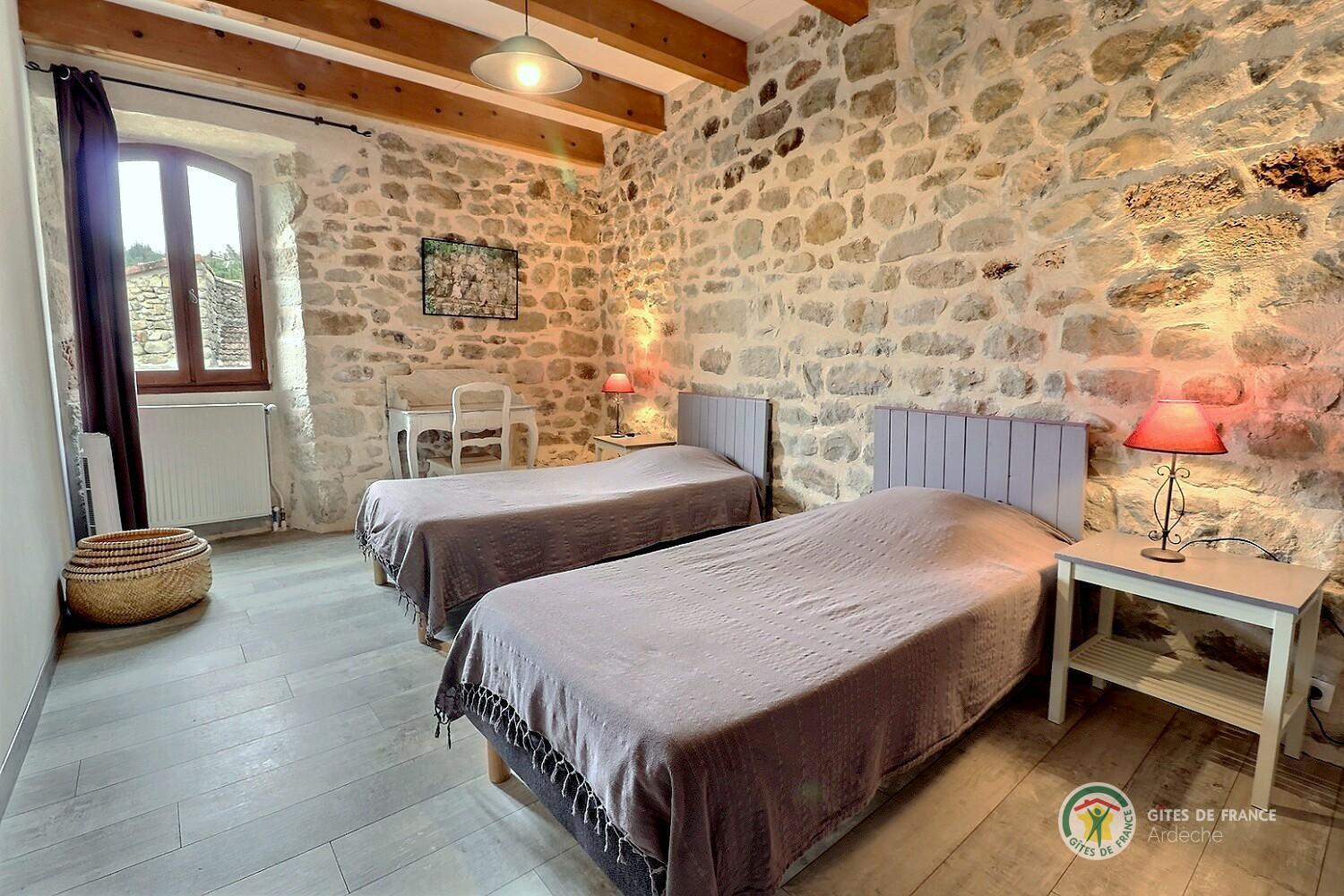 A trois kilomètres au sud de Largentière, cette grande maison de famille en pierres est idéale pour se retrouver entre amis ou en famille. Le rez-de-chaussée offre les espaces de vie et une chambre, les quatre autres sont à l’étage.