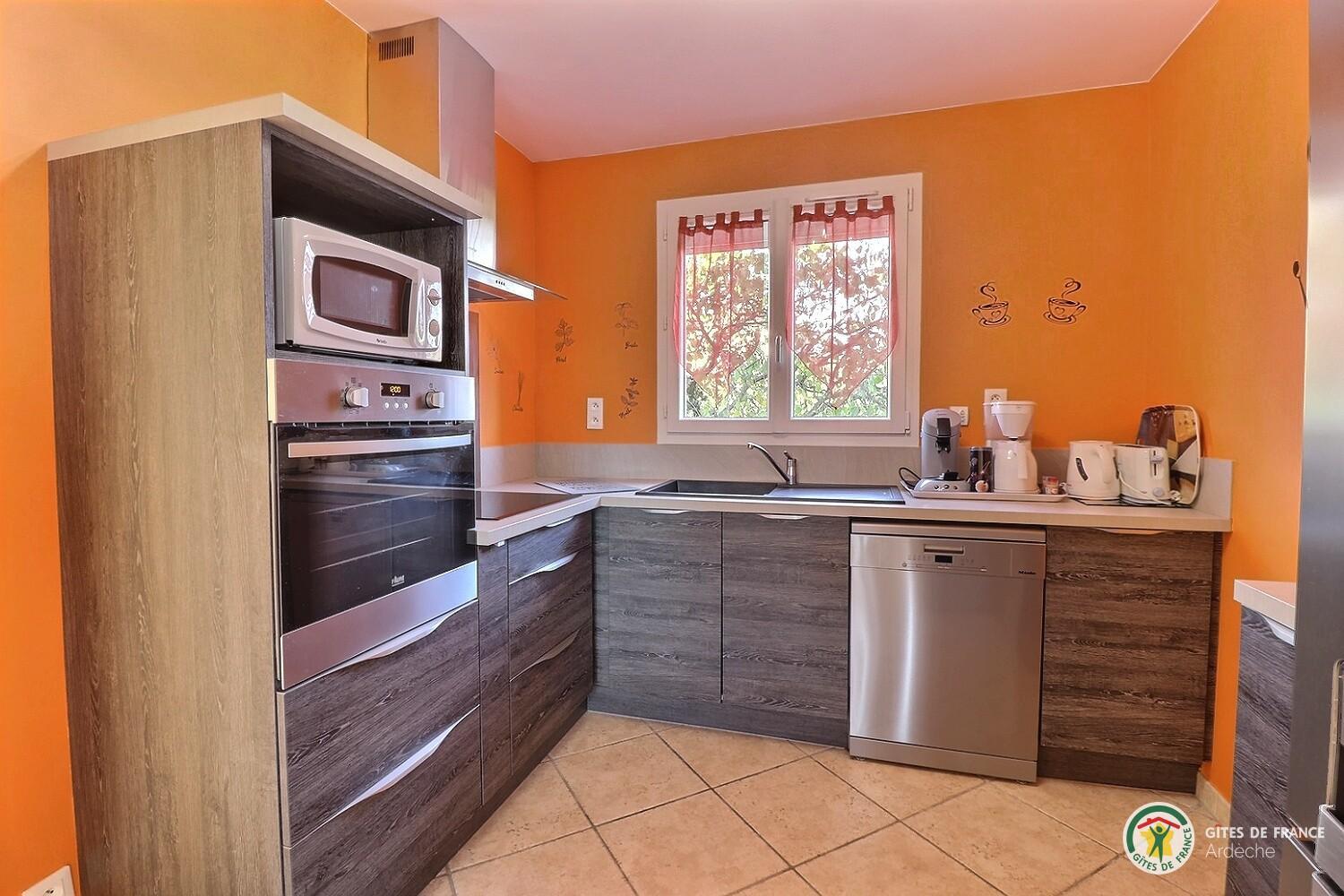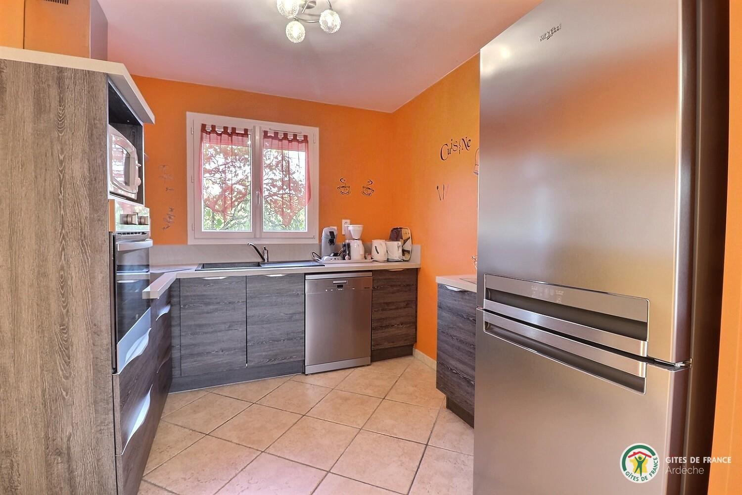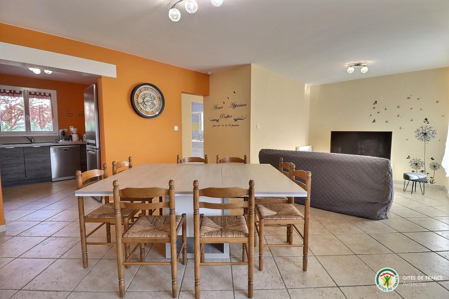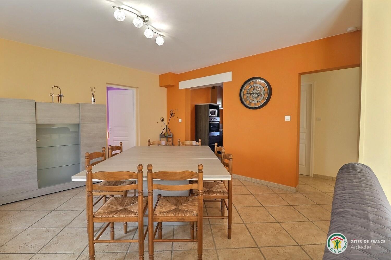 À l'intérieur, le gîte dispose d'une pièce de vie avec cuisine intégrée ouverte sur le séjour-salon (TV grand écran, connexion wifi). Côté nuit, 4 chambres confortables (3 avec un lit en 140 et 1 avec deux lits en 90).