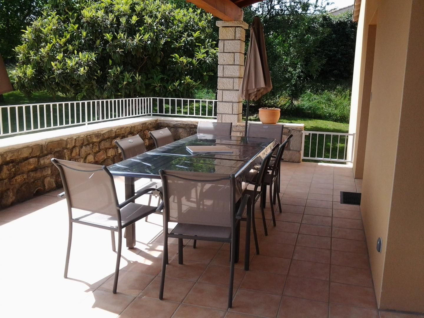 Dès votre arrivée, vous serez séduits par l'atmosphère chaleureuse du lieu. La terrasse, semi-couverte, orientée plein sud, constitue un véritable espace de vie à elle seule : petit-déjeuner face au paysage, moments de lecture à l'ombre, soirées paisibles baignées de lumière…