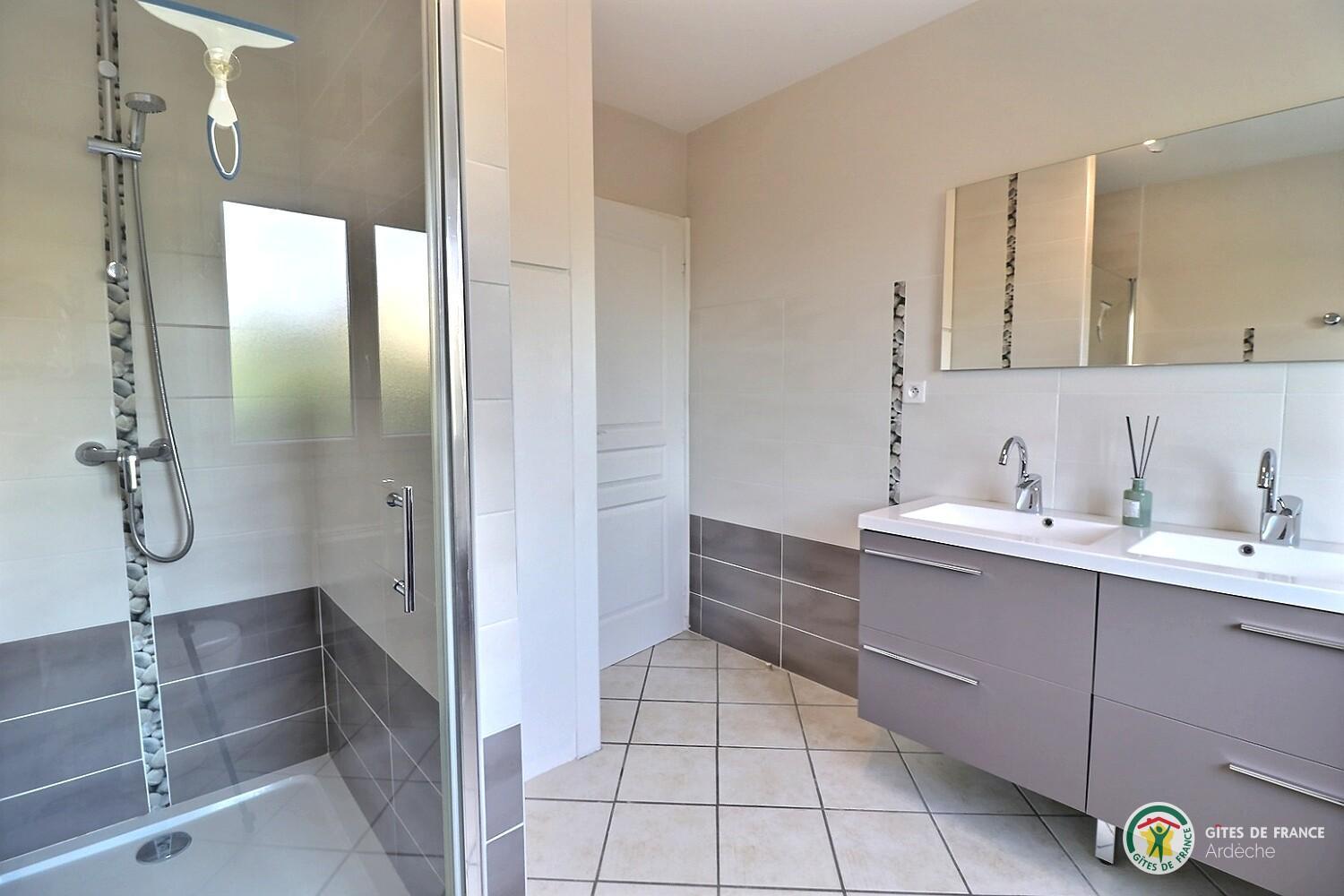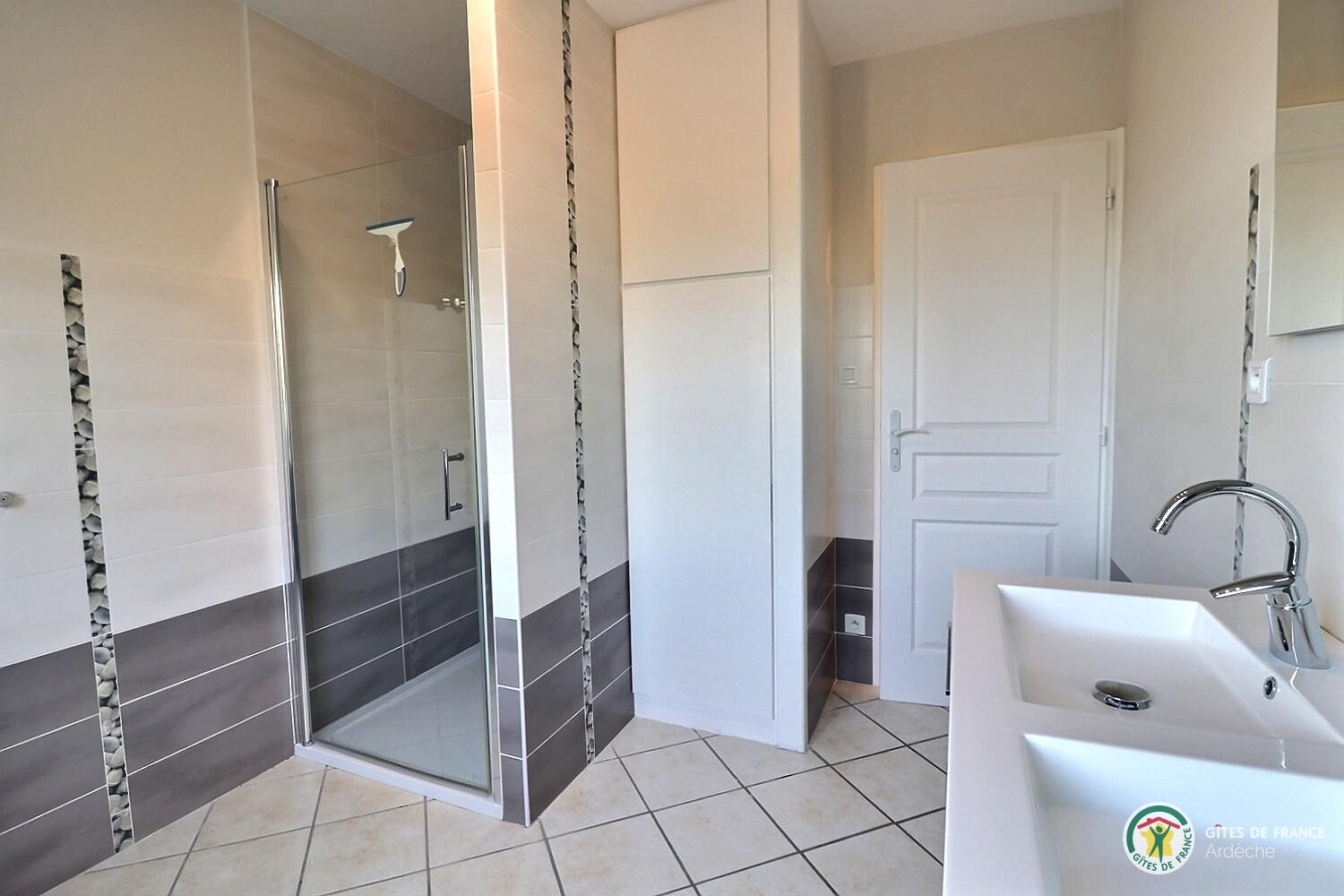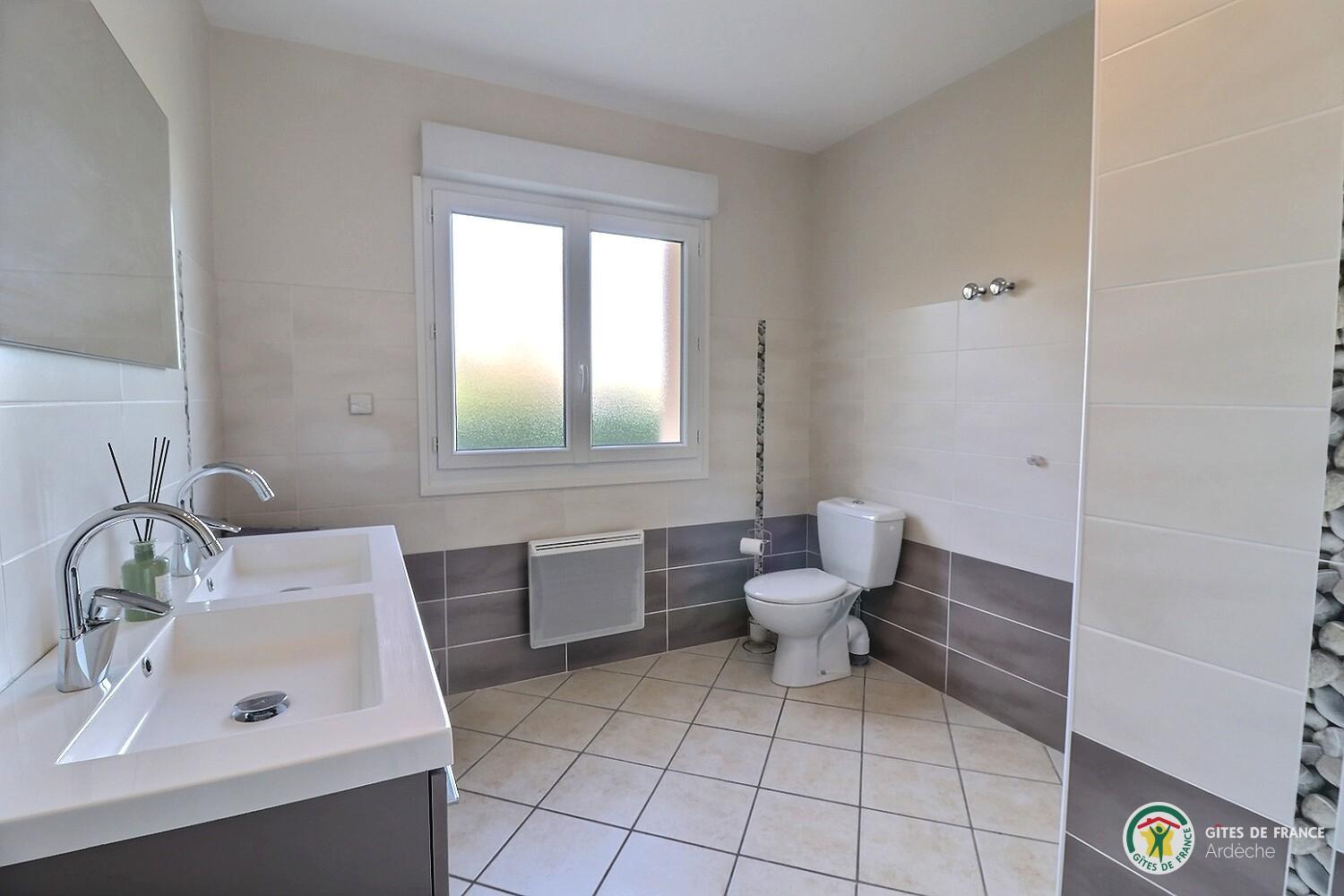 Deux salles d'eau et 2 wc (dont un indépendant). Un hébergement parfait pour se sentir “comme chez soi”, le temps d'une échappée ardéchoise.
