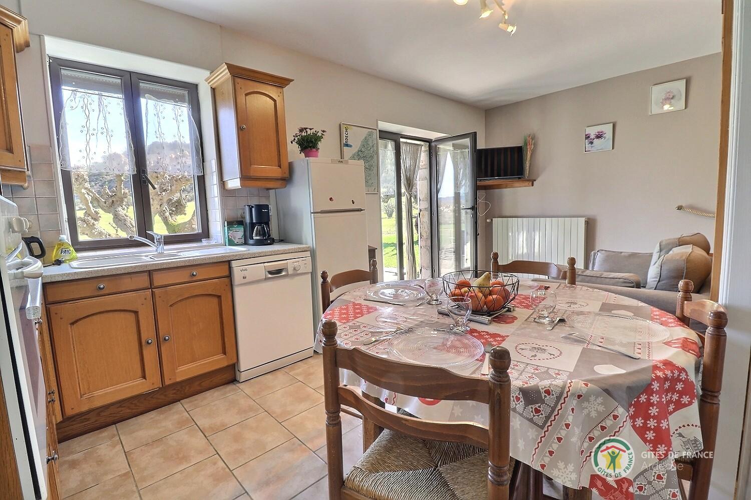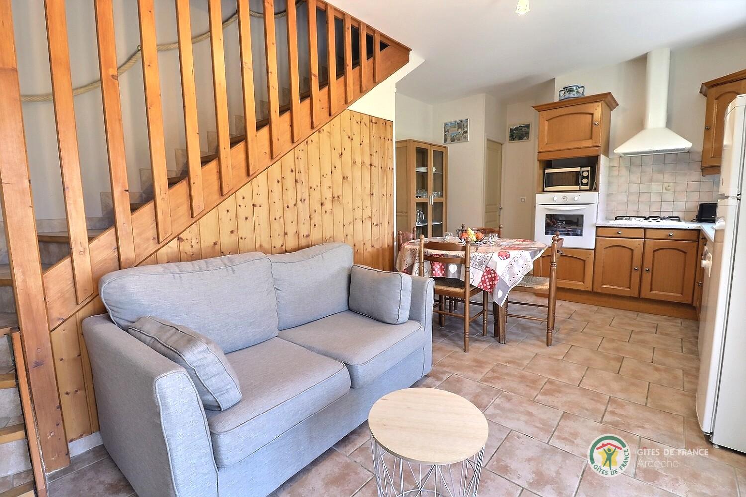 En pleine nature, au calme, ancienne ferme restaurée mitoyenne à un 1er gîte à l'étage, et à la maison du propriétaire, au coeur d'un mas agricole en activité. Accès au gîte indépendant. Piscine commune. Terrasse très agréable.