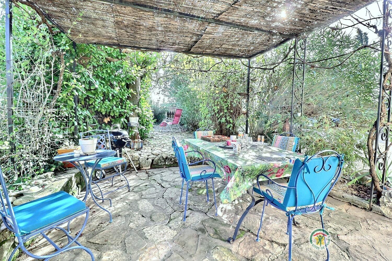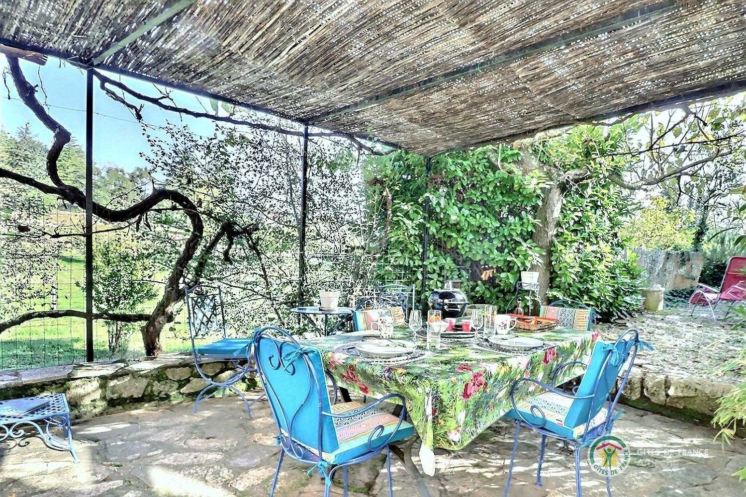 A la recherche d'un endroit calme des bruits de la ville et en nature, dans un habitat simple et sobre ? alors, c'est l'endroit. Faites une pause et détendez-vous dans cette petite maison au milieu des oliviers avec une jolie vue sur un étang. De la terrasse ombragée, on respire la nature avec, devant soi, un panorama verdoyant. A certaines périodes, grenouilles coasseront et cigales chanteront. C'est juste la nature qui s'exprime ! Ici, repos et ressourcement sont les maîtres mots de votre séjour. Déconnexion totale (pas de box wifi). L'espace de vie est coloré et les objets sont chinés. On aime ou pas ! Dans cette pièce, salon avec canapé, fauteuil électrique relax, TV, coin repas et cuisine équitablement équipée. Grande chambre (lit en 140) avec moustiquaire à la fenêtre. La salle d'eau, "ancienne génération", est petite mais tout y est : meuble vasque, sèche-cheveux et bac de douche. Pour votre confort, Christine, la propriétaire, fait votre lit et fournit les serviettes de toilettes. Le jardin est entièrement clos, idéal pour l'accueil de votre petit chien. Vous pourrez garer votre voiture en toute tranquillité devant le portail ou dans la petite cour. L'accès au gîte se fait, sur les derniers mètres, sur un petit chemin carrossable. Place au dépaysement ! Un séjour nature avec randos à pied ou à vélo depuis le gîte. Les commerces sont à 10 minutes en voiture de La Cité Médiévale de Largentière. A proximité, découverte des villages de caractère : Les Vans, Joyeuse, Vinezac, Balazuc, Vogüé.. Sans oublier les célèbres Gorges de l'Ardèche, le Pont d'Arc et la Grotte Chauvet2-Ardèche....