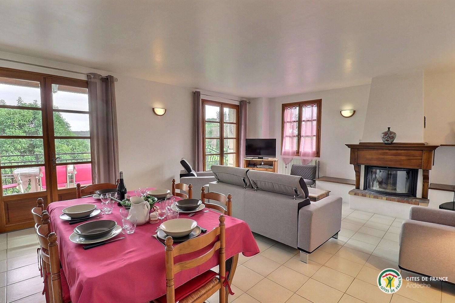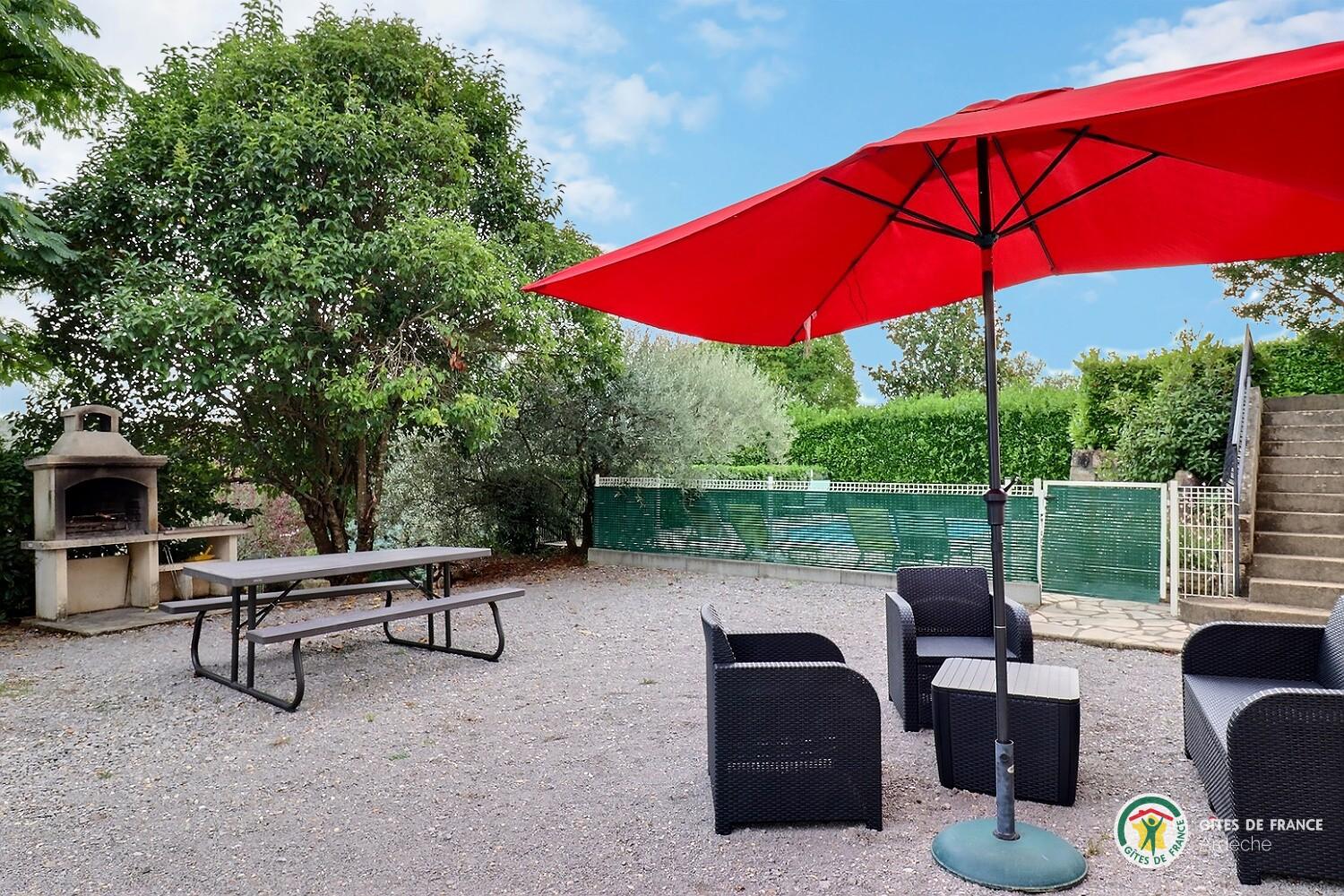 Maison indépendante sur les coteaux de la Cévenne Ardéchoise avec piscine privée (clôturée) et grand terrain. Séjour, coin salon avec cheminée insert, Espace de la Perle d'Eau (piscine, spa, massages) à 10min. Beaux villages à découvrir.