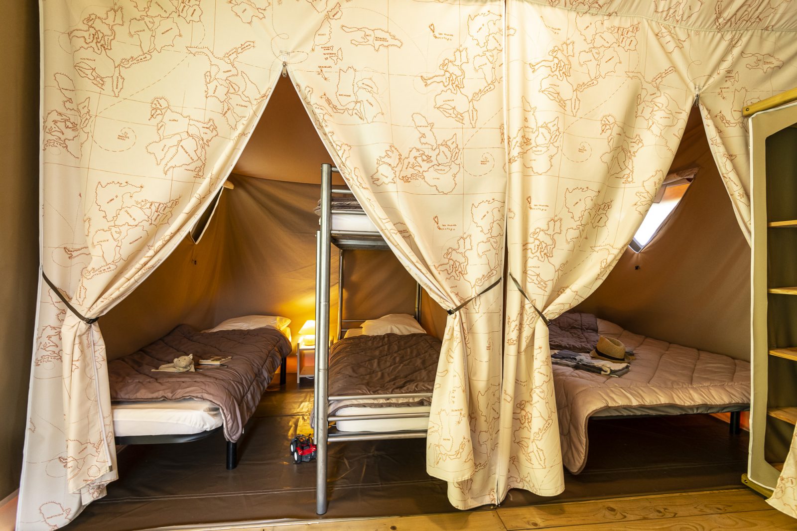 Les tentes Canada proposent un espace de vie spacieux de 20 m² avec une grande terrasse couverte de 14 m² permettant de prendre ses repas à l’extérieur par tout temps avec vue sur la rivière.