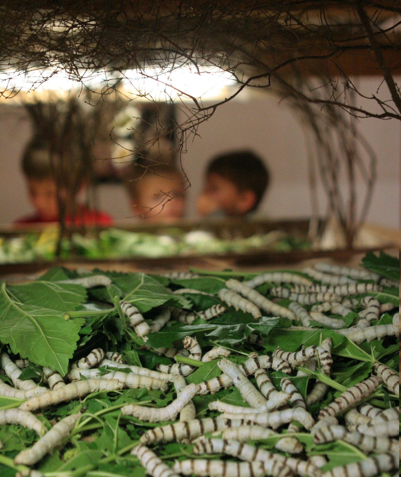 Les chenilles et papillons qui font la soie sont vivants et peuvent être manipulés en présence des animateurs.