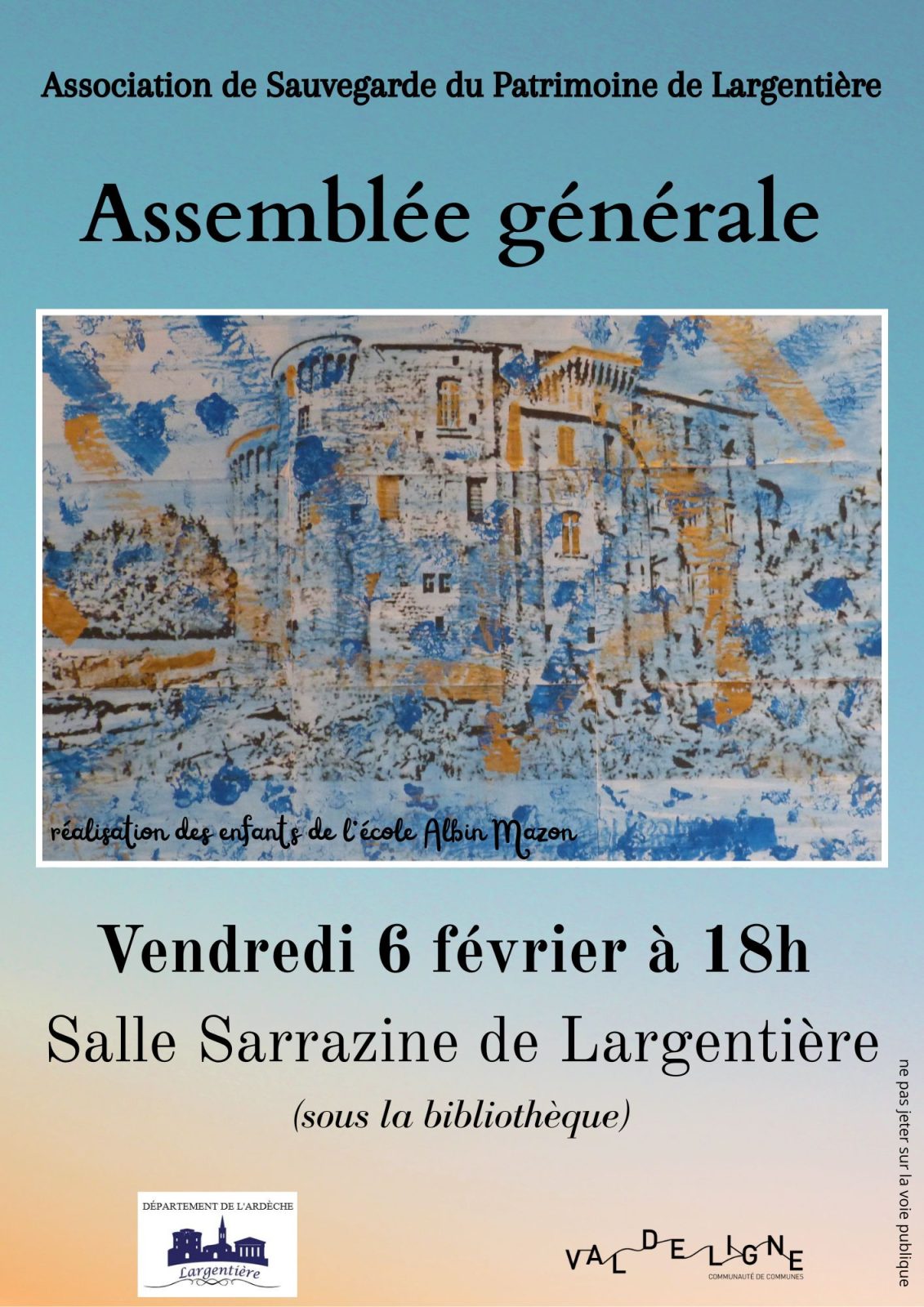 L’Association Sauvegarde du Patrimoine de Largentière invite ses adhérents et les personnes intéressées à son assemblée générale, un temps d’échange autour des actions et des projets à venir pour la valorisation et la préservation du patrimoine local.