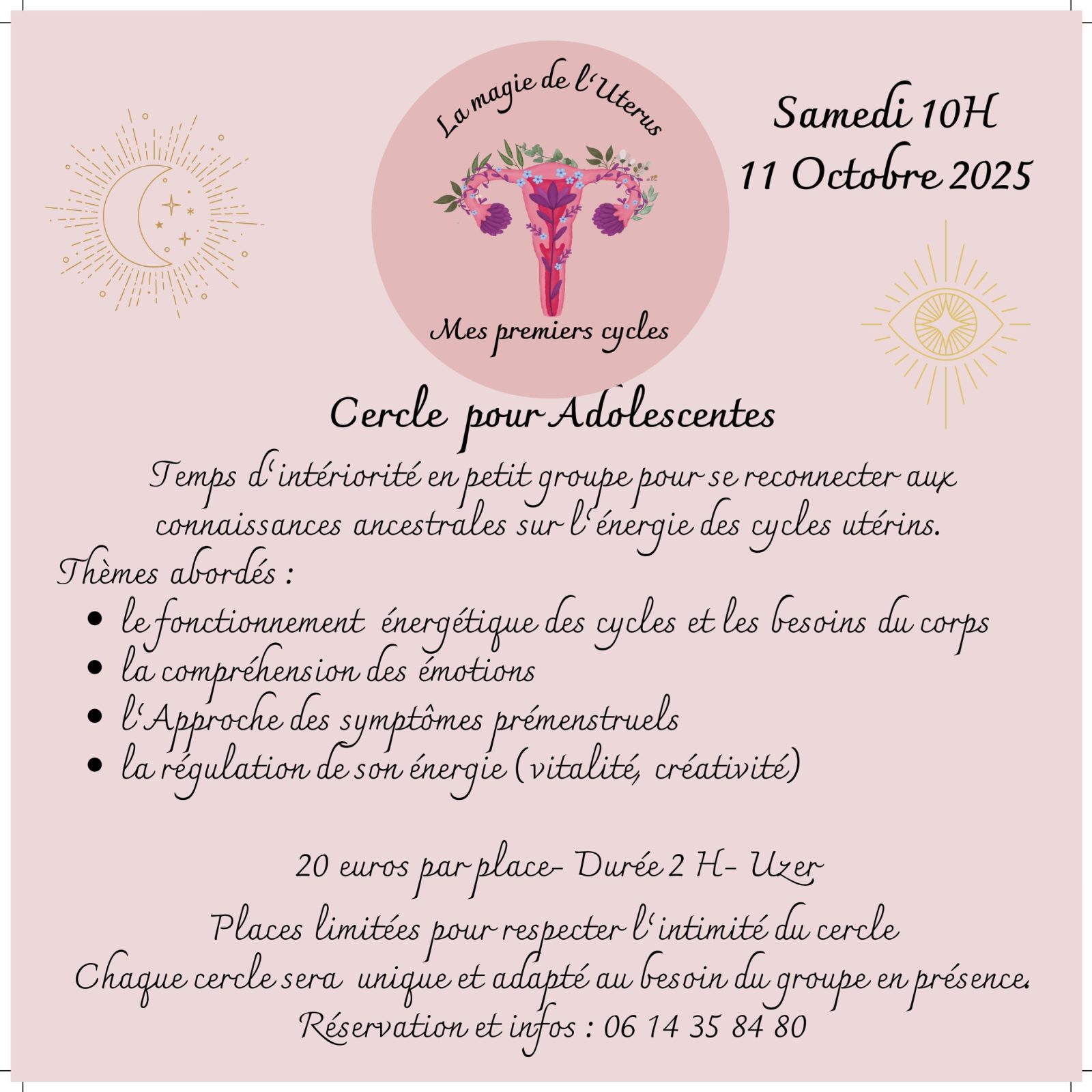 Temps d’intériorité en petit groupe pour se reconnecter aux connaissances ancestrales sur l’énergie des cycles utérins. Thèmes abordés : le fonctionnement énergétigue des cycles et les besoins du corps la compréhension des émotions l’Approche des symptômes prémenstruels la régulation de son énergie (vitalité, créativité) Places limitées pour respecter l’intimité du cercle Chaque cercle sera unique et adapté au besoin du groupe en présence.