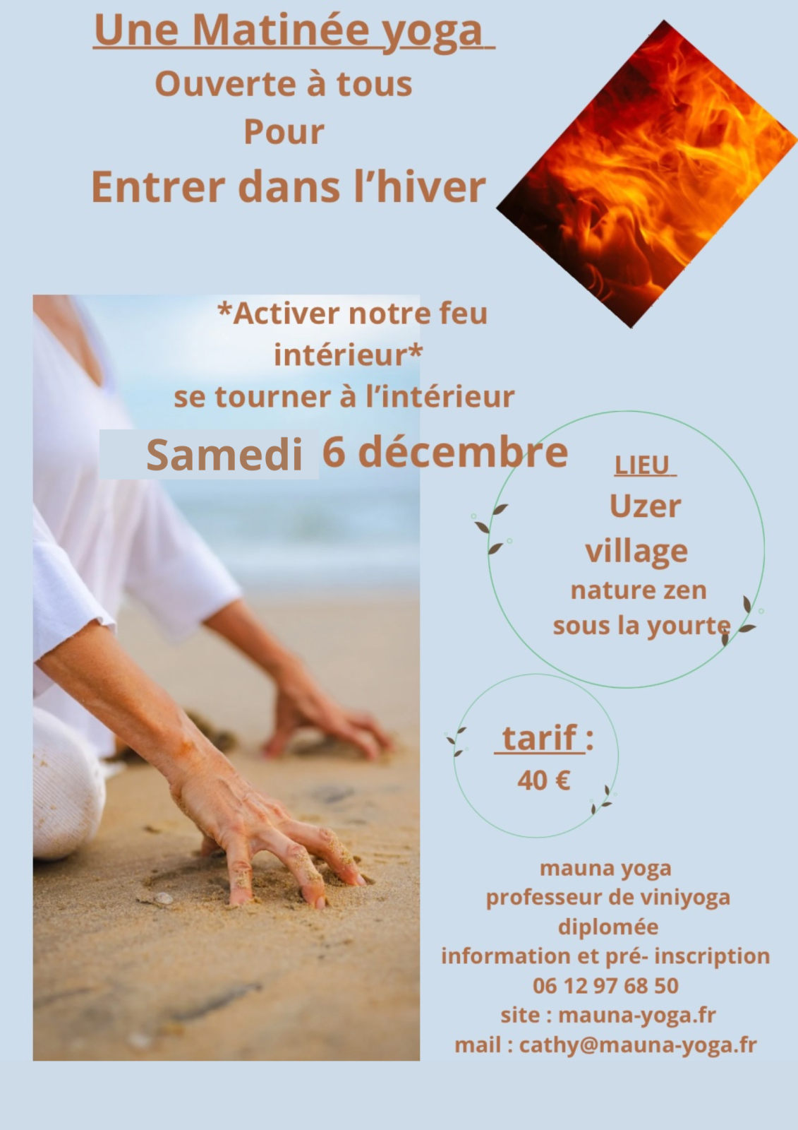 Une matinée ouverte à tous pour activer son feu intérieur et se tourner vers l’intérieur, sous la yourte du village d’Uzer.
