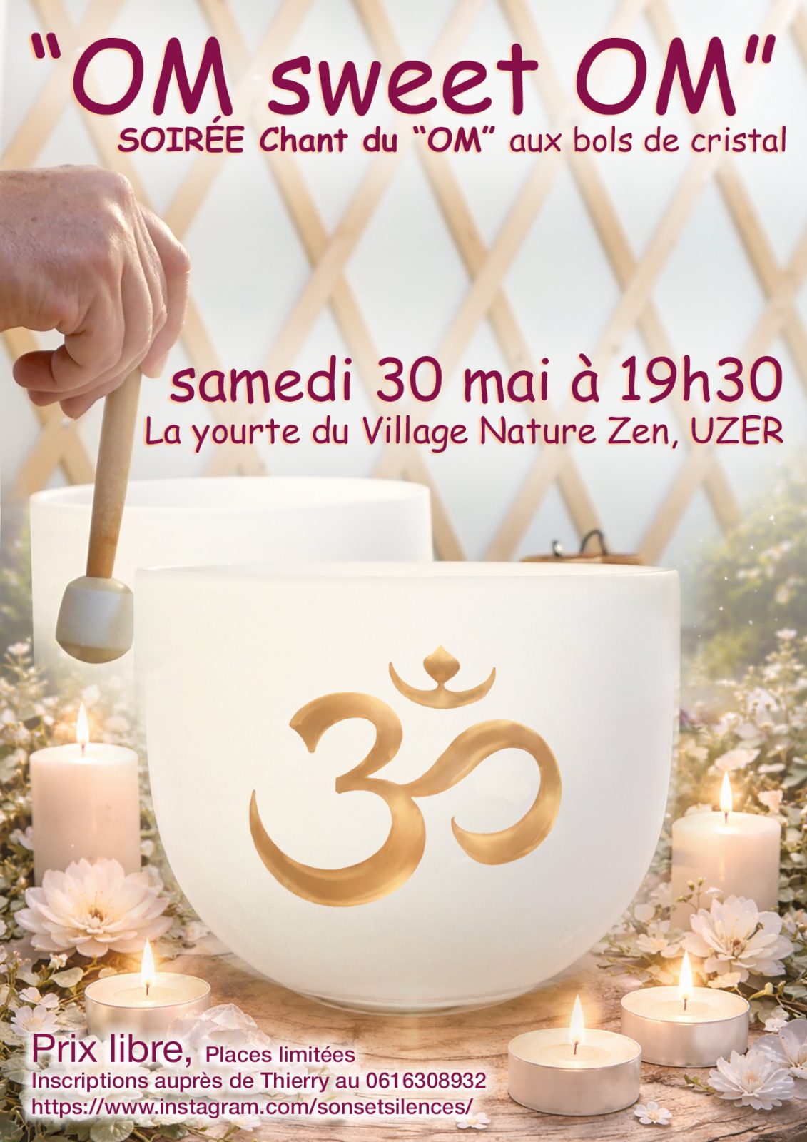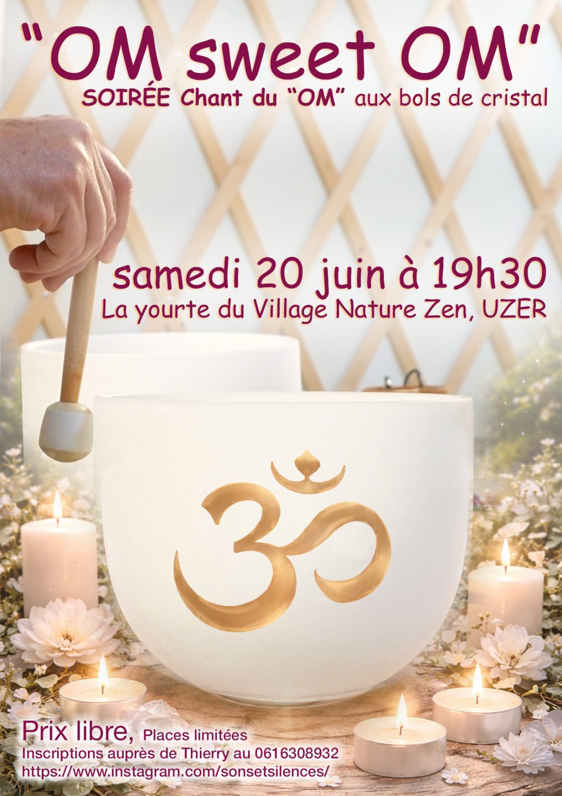 Soirée chant du OM pour la paix aux bols de cristal Venez vibrer ce Son universel accompagné des bols de cristal.